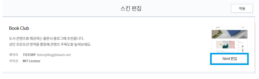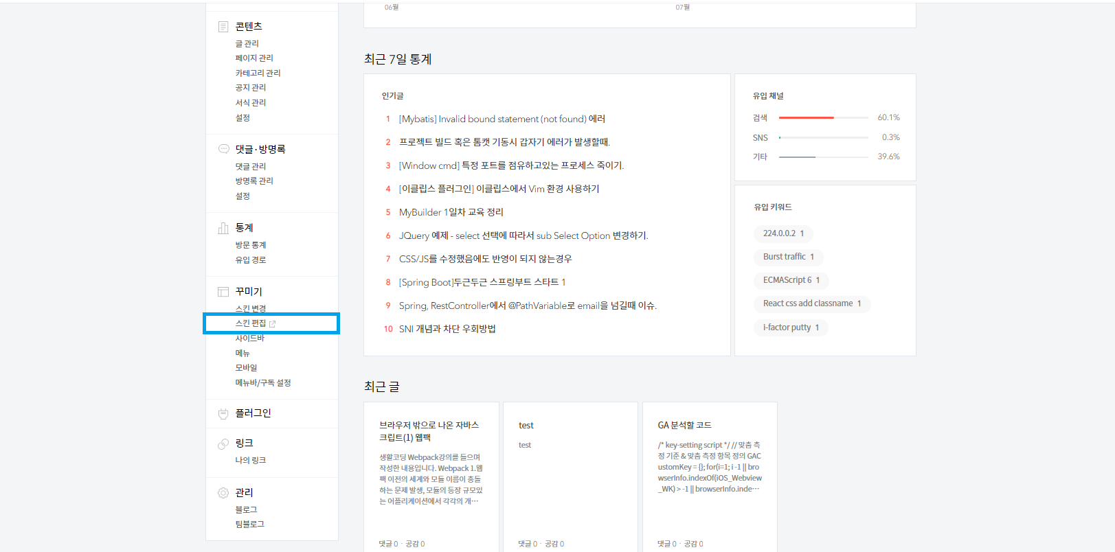 1) 블로그 관리메뉴 > 스킨편집으로 이동한다