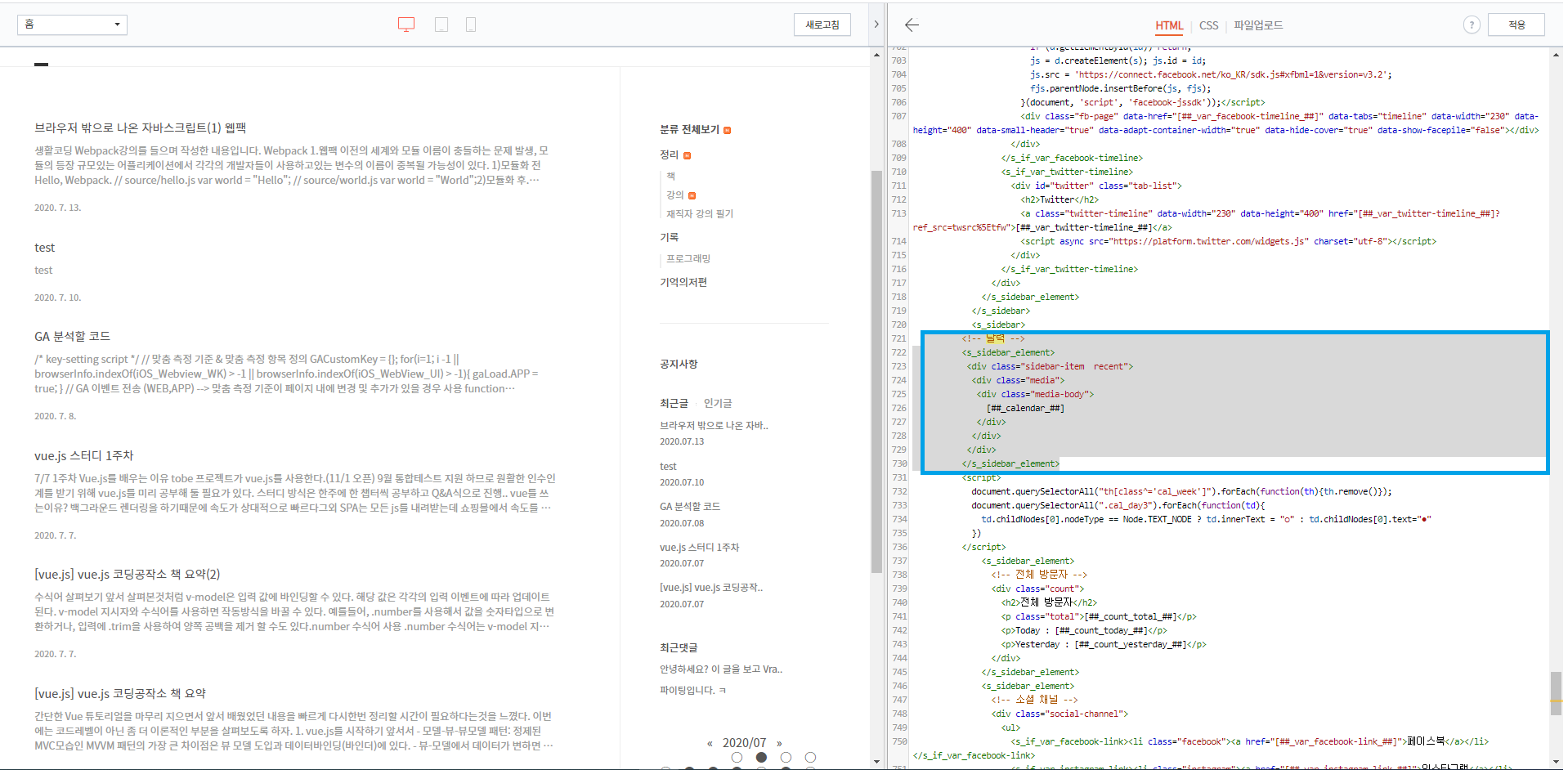 티스토리 캘린더 템플릿을 이용해서 어설프지만 비슷하게 만들어 보기로 했다.